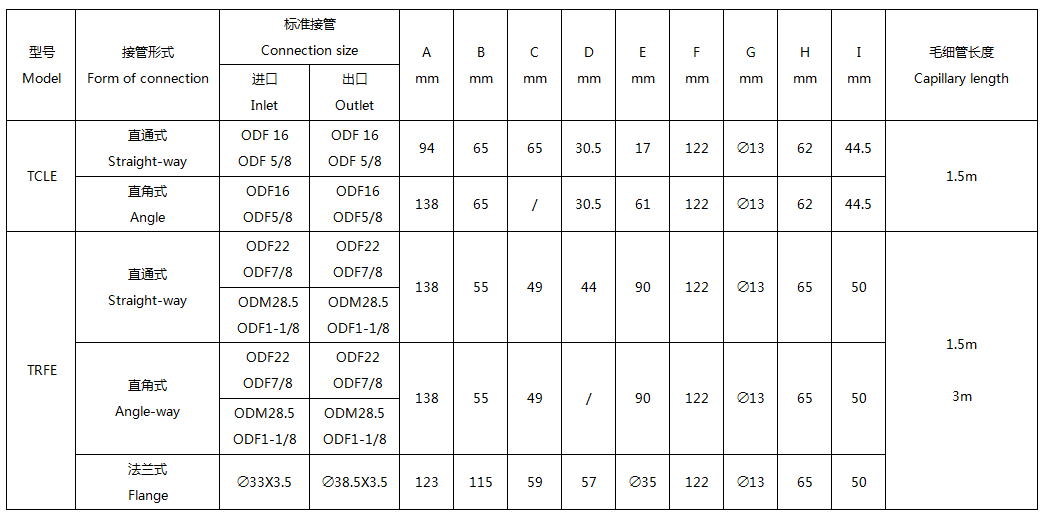 TCLE TRFE series thermal expansion valve is a split expansion valve, suitable for a wide range of fields such as air conditioning, commercial refrigeration, transportation air conditioning and refrigeration.