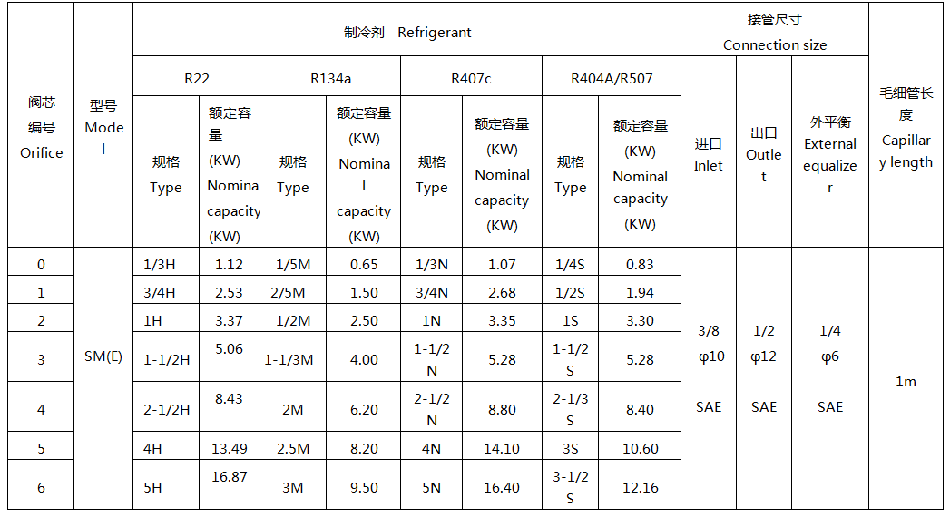 SM(E)系列熱力膨脹閥,采用多種充注形式,能滿足空調(diào)、冷藏柜、冰箱、除濕機(jī)等各種系統(tǒng)需求。