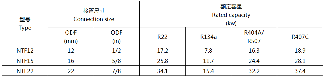 額定容量是基于以下參數(shù)的制冷容量: