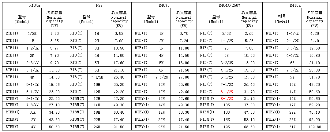注:名義制冷量是基于蒸發(fā)溫度te=5℃,冷凝溫度tc=40℃,進(jìn)入膨脹閥液體制冷劑溫度34℃,靜止過熱度4K。